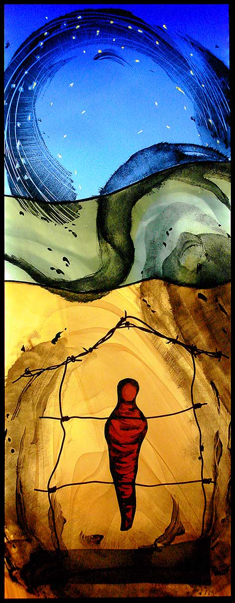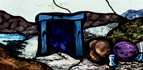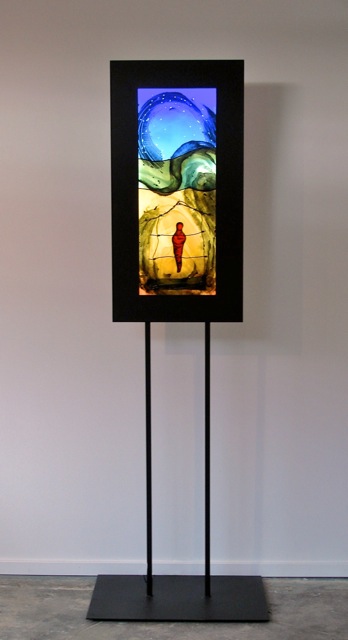 DetailGlass has the ability to express the spiritual and, via light, make a strong connection directly to our emotions. The differing qualities of light as it is transmitted or reflected, or when it is opaque, transparent or partially obscured, are part of the visual language of working with glass. Painting is also a large part of my glass art, both for image-making and to achieve a more nuanced control of light and color.